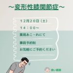 2025年11月1日 / 最終更新日 : 2025年11月6日 美穂荒井 健康フェア 第35回 薬と健康セミナー(変形性膝関節症) 12月の薬と健康セミナー、 薬局あこーれでは「変形性膝関節症」についてお話しします。 寒さと共に関節の節々が痛くなってきた方も多いのではないでしょうか? セルフチェックや自宅でできるストレッチ、 日常生活の工夫などぜひ薬 […]
