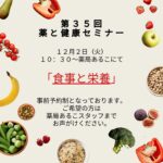 2025年11月1日 / 最終更新日 : 2025年11月6日 美穂荒井 健康フェア 第35回 薬と健康セミナー(食事と栄養) 12月の薬と健康セミナー、 アイビー薬局・コスギ薬局・薬局あるこでは 「食事と栄養」についてお話しします。 11月号のFIORE新聞でもお伝えした減塩のコツなど 日々の生活に役立つ情報が満載です。 ぜひ各店スタッフまでお […]