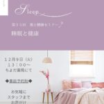 2025年11月1日 / 最終更新日 : 2025年11月6日 美穂荒井 健康フェア 第35回 薬と健康セミナー(睡眠と健康) 12月の薬と健康セミナー、 ちよだ薬局では「睡眠と健康」についてお話しいたします。 なかなか眠れない、眠りが浅い、寝ても疲れが取れない…など 睡眠に関するお悩みのある方はぜひご参加ください。 詳細はちよだ薬局までお問い合 […]